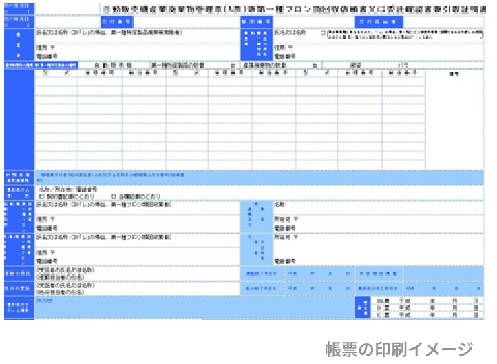 KENETは、産業廃棄物管理票を財団法人産業廃棄物処理振興センターが運営する電子マニフェスト(JWNET)に直接廃棄データを登録することにより、従来の紙マニフェスト運用による帳票の返却管理や保管といった煩雑な業務が不要となります。マニフェスト様式は一般的に利用されている「産業廃棄物帳票」のほかに、これまでJWNETに未対応であった「自動販売機産業廃棄物管理票」の様式にも対応しています。