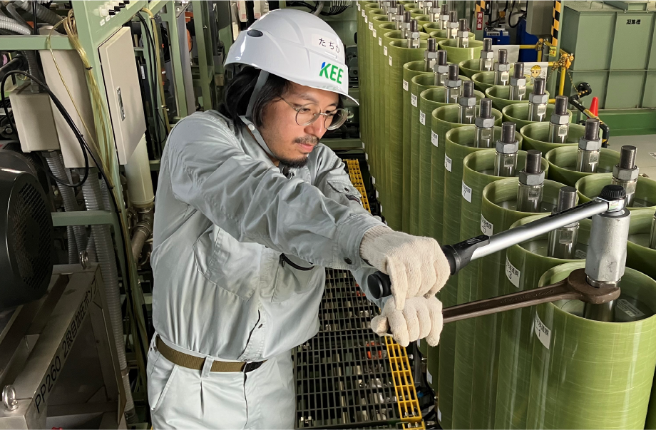 現在は水処理施設の設計業務や見積作成、廃プラスチックのリサイクルに関連する技術開発などを担当しております。